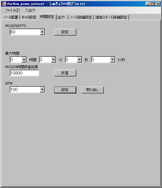 まずは、mugenのfpsと時間を設定します。(改良予定)