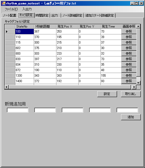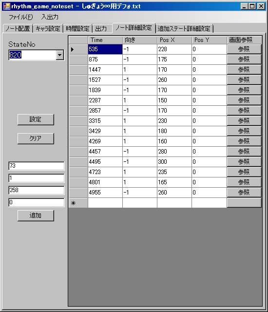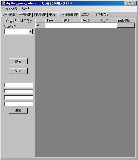 ステート番号ごとに、発生させたい時間、向き、位置を設定します。